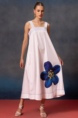 This white poplin midi is your blank canvas, with a deep blue floral print that adds just the right amount of drama. With broad straps and an effortless drape, it’s calm, collected, and unexpectedly expressive.