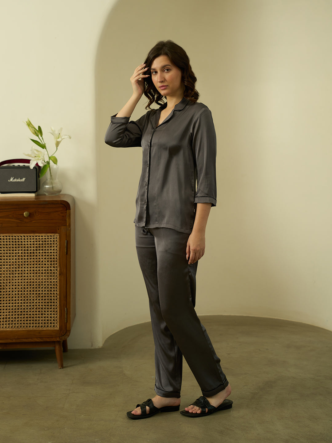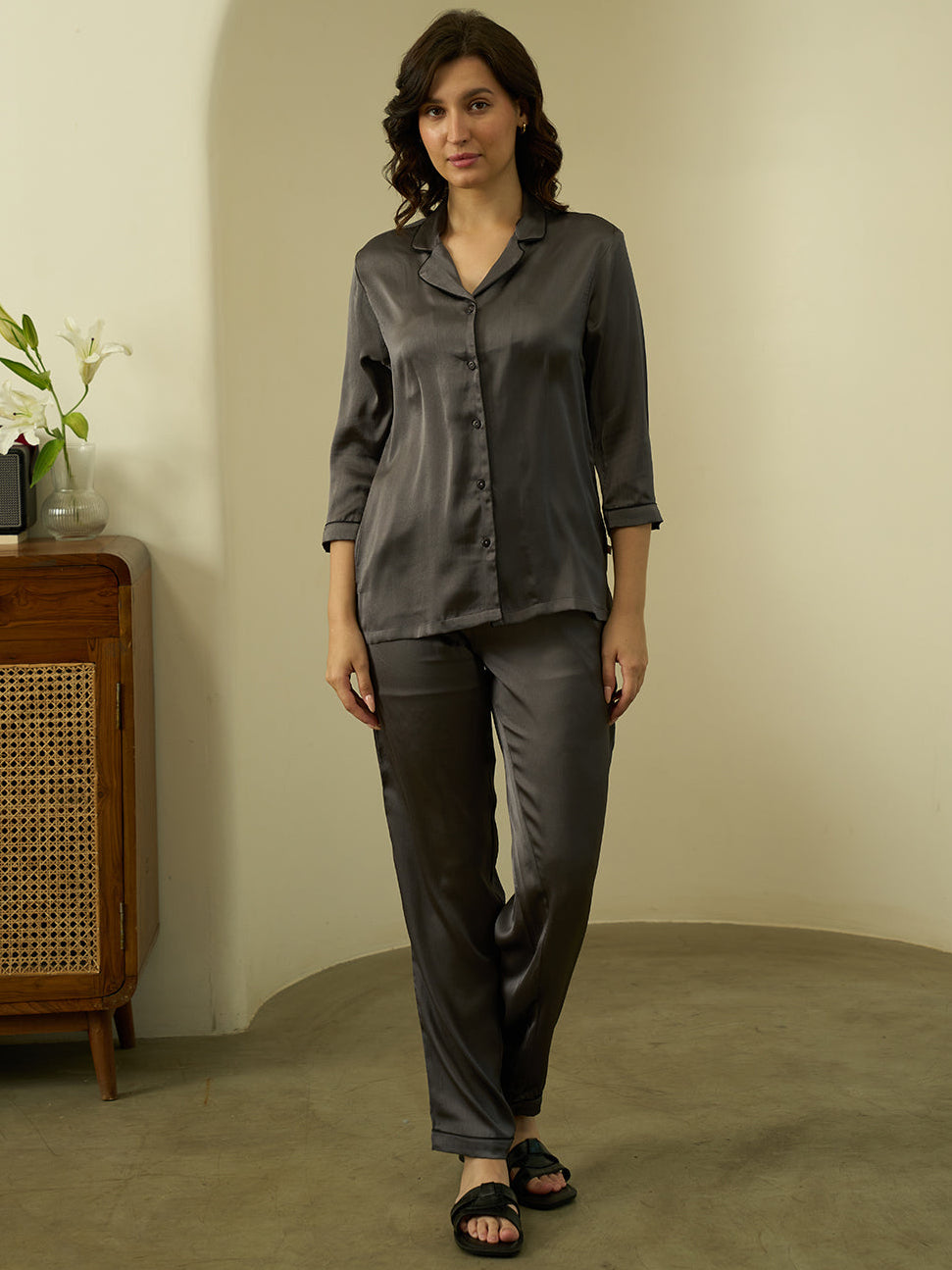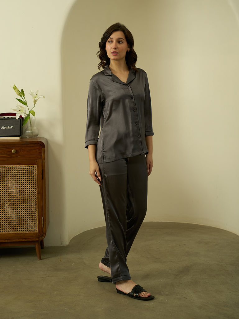 Charcoal Luxe Satin PJs