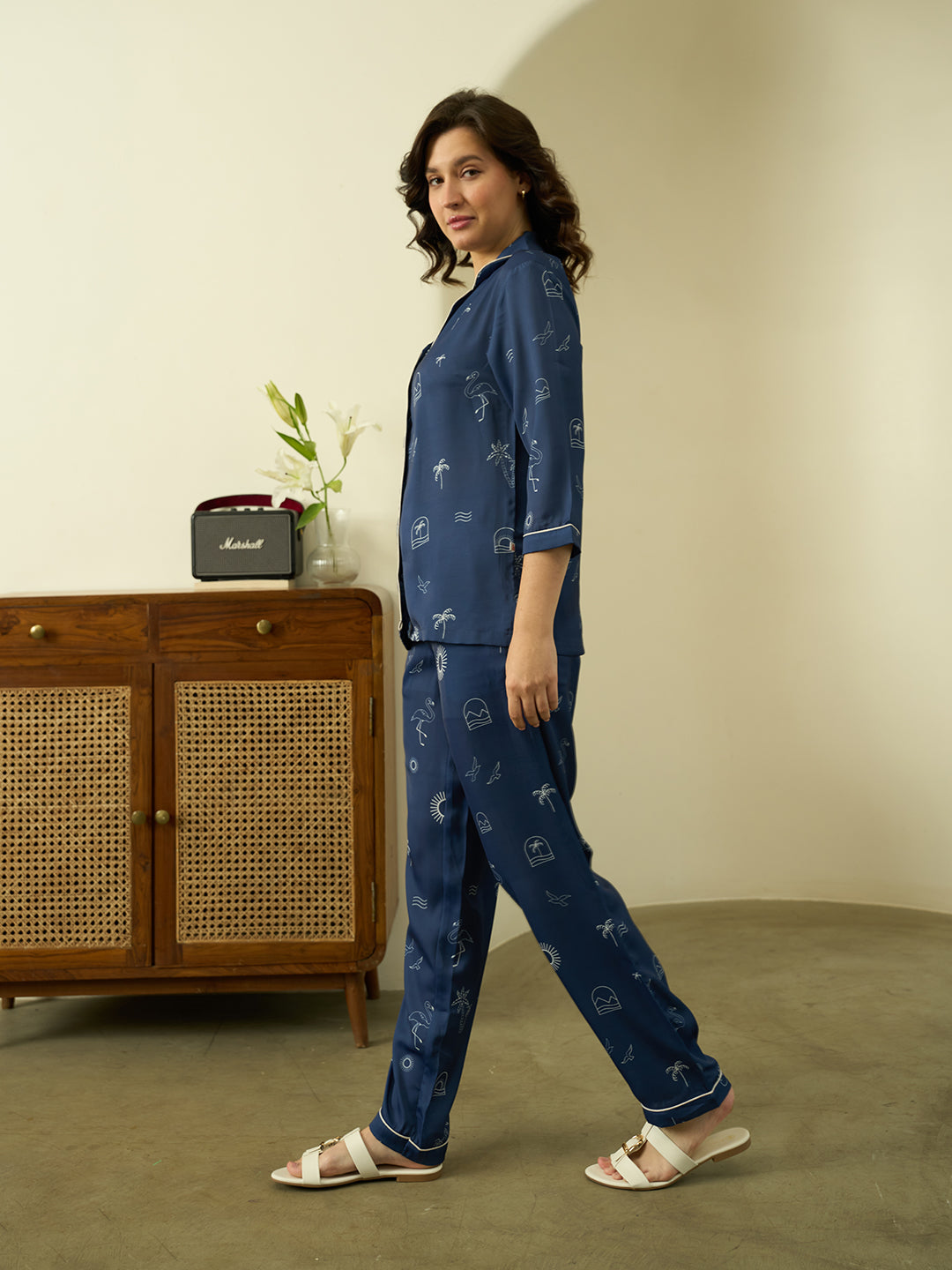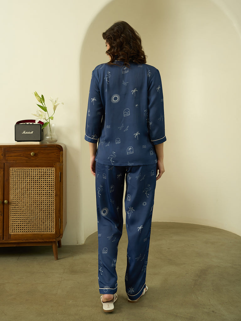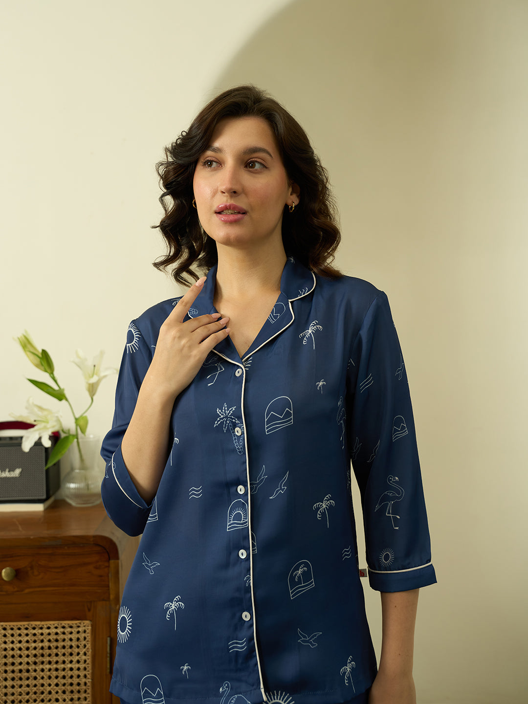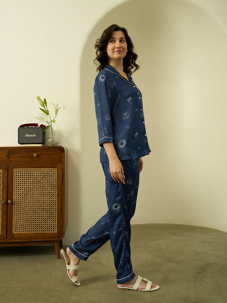 Warning: Extreme comfort detected. These satin PJs are your official ticket to the Chill Zone, complete with sun, sea, and stellar snoozing.