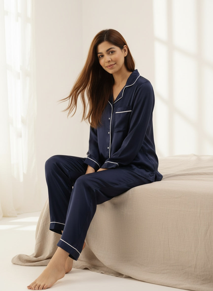 Midnight Blue Satin PJs