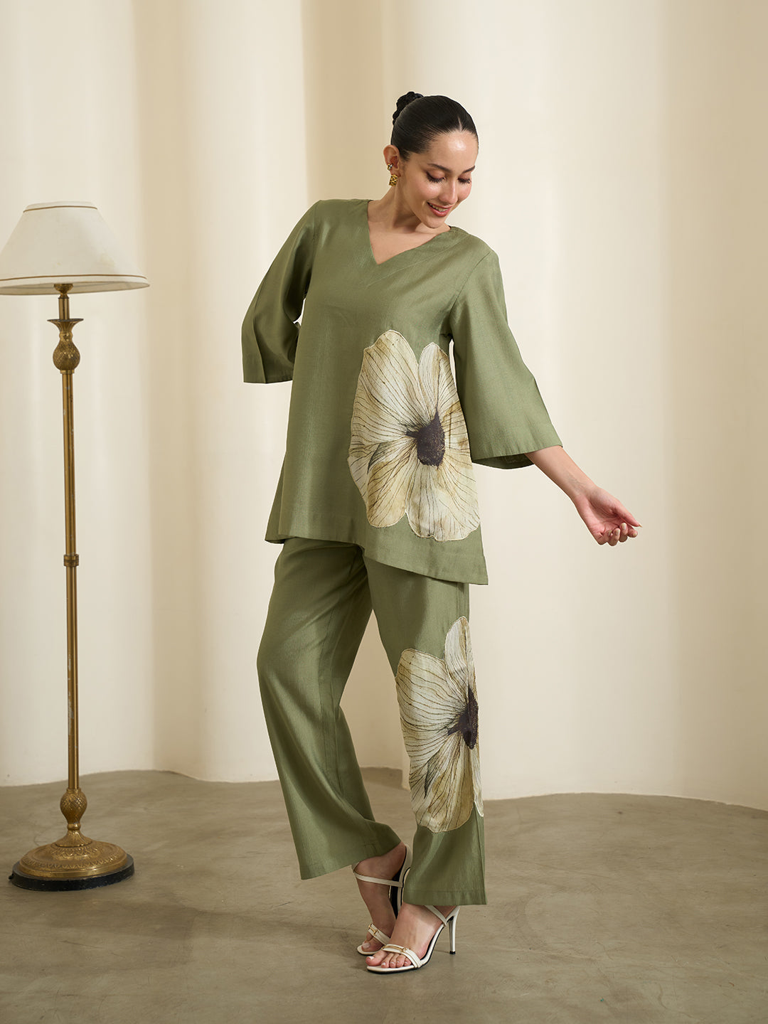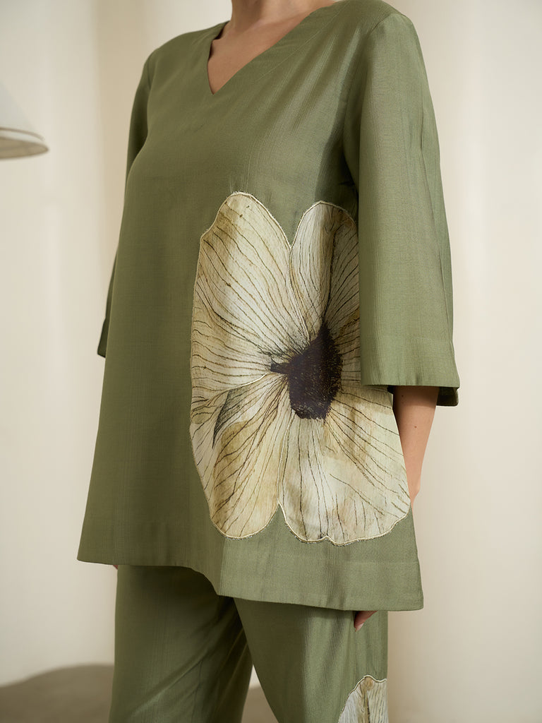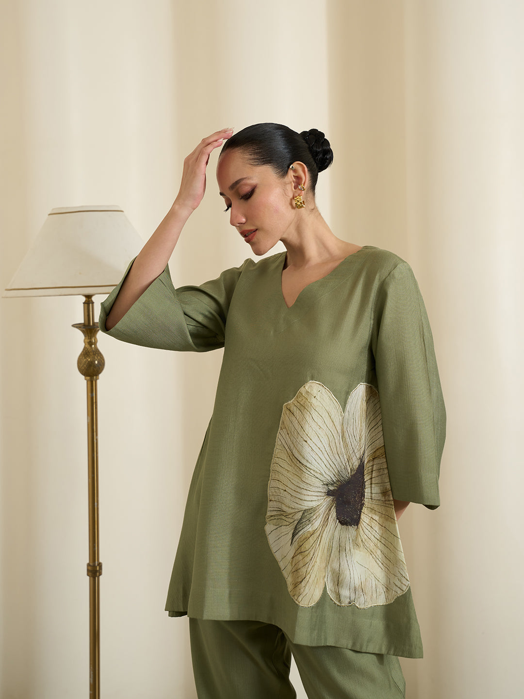 Meet your neutral-but-not-basic bestie. Olive Bloom brings earthy tones to life with a chic ivory floral twist. It’s giving calm luxe with just enough statement. Soft on the skin, sharp on style -  this one’s your instant “effortlessly aesthetic” look.