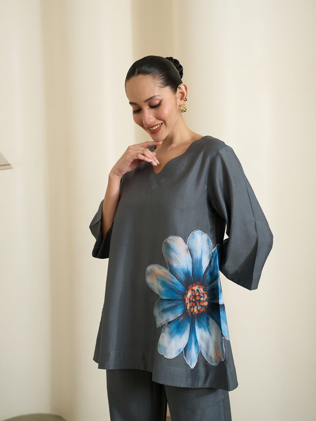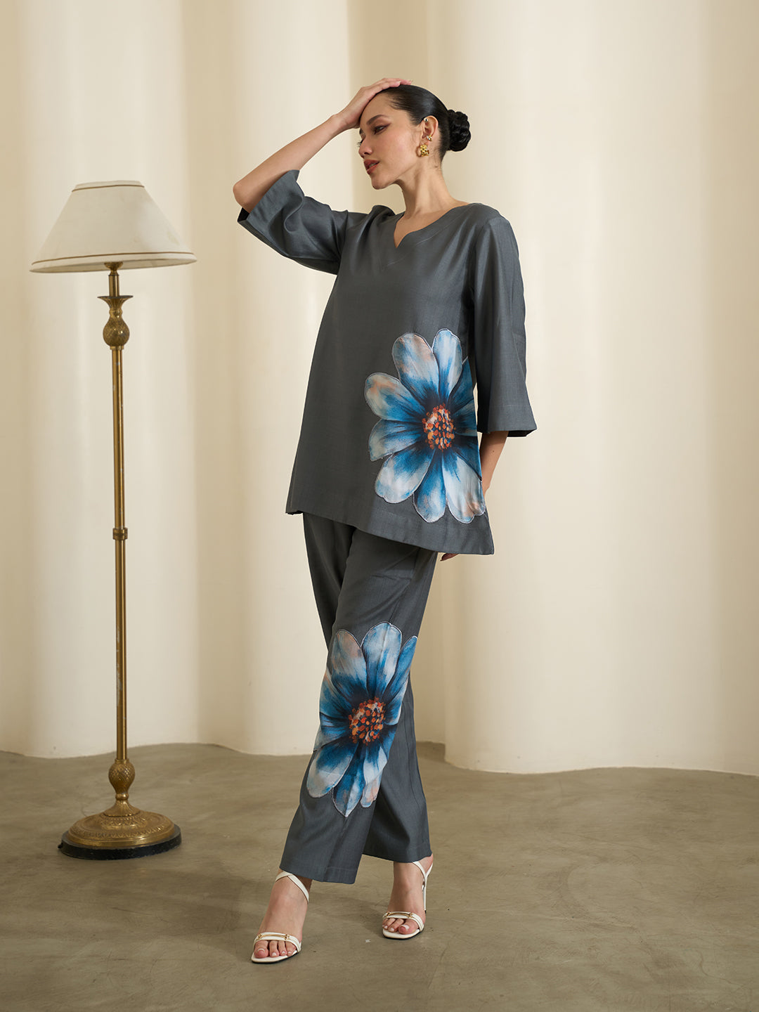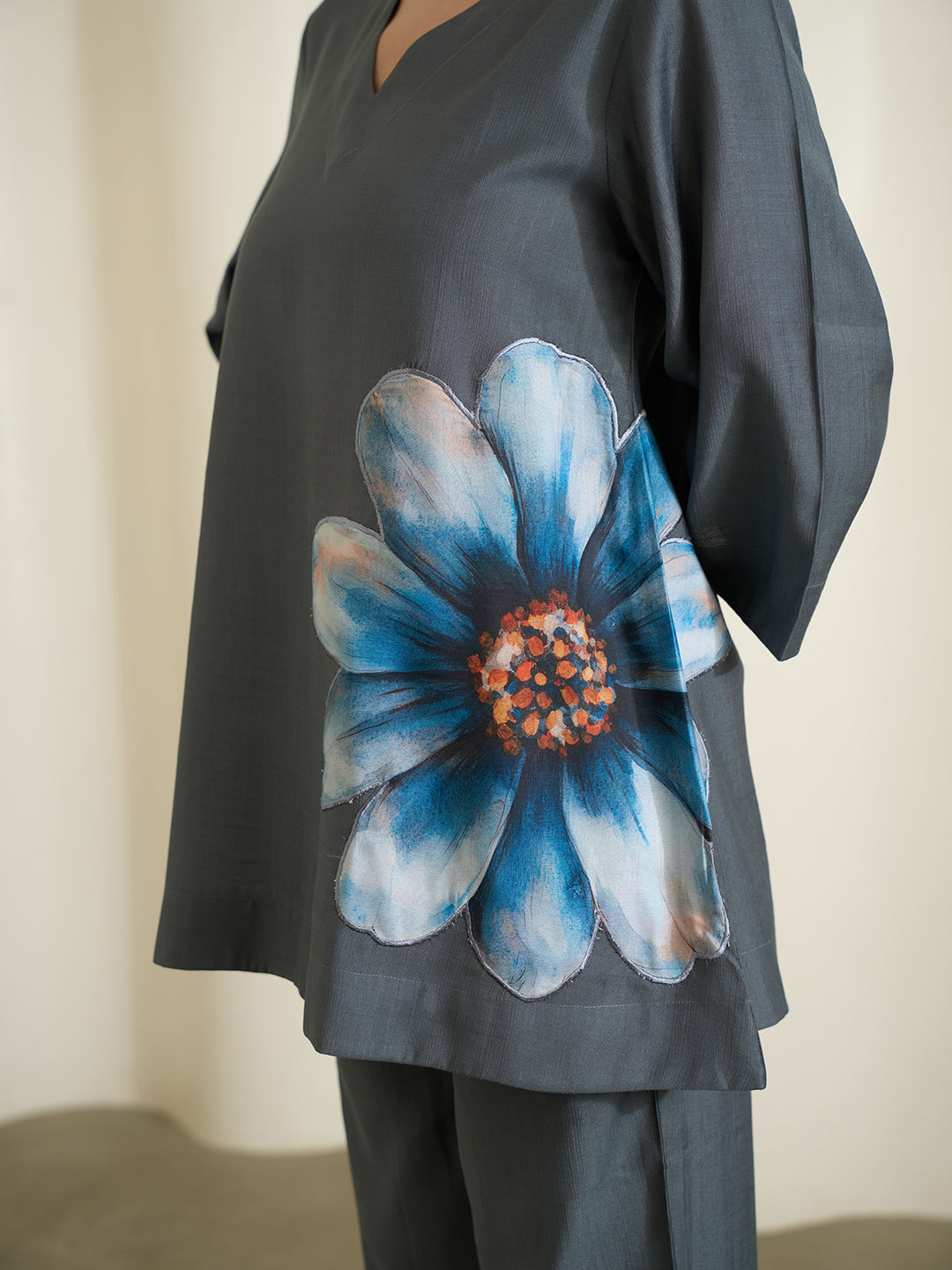 Cool girl energy: activated. The Steel Bloom Upcycle Coords in sleek charcoal are where edgy meets elegant. With a dreamy blue flower that softens the steel tone, this one’s all about balance, think city minimalism meets Sunday chic. Throw on statement earrings and slides, and let your outfit do the talking.
