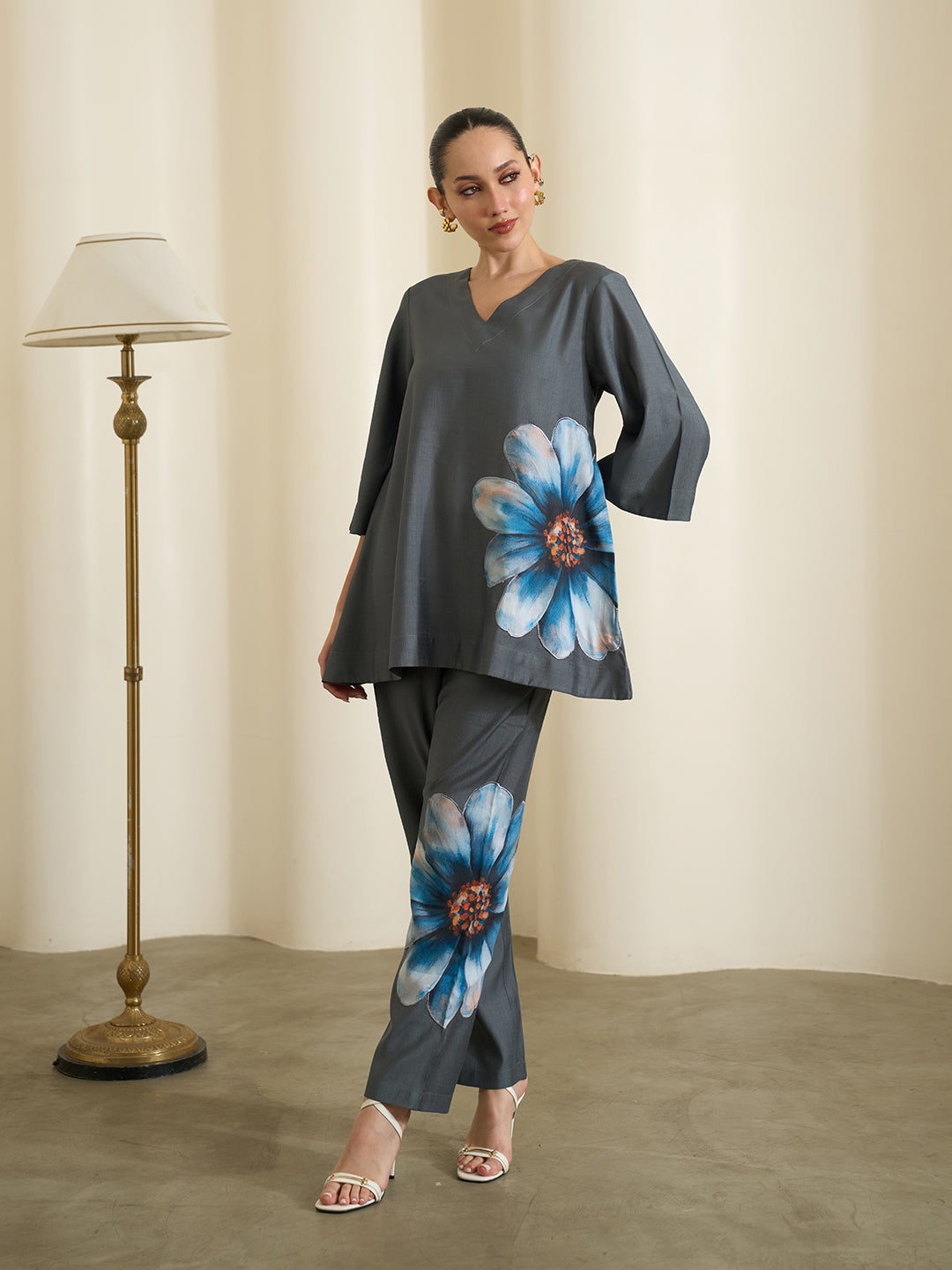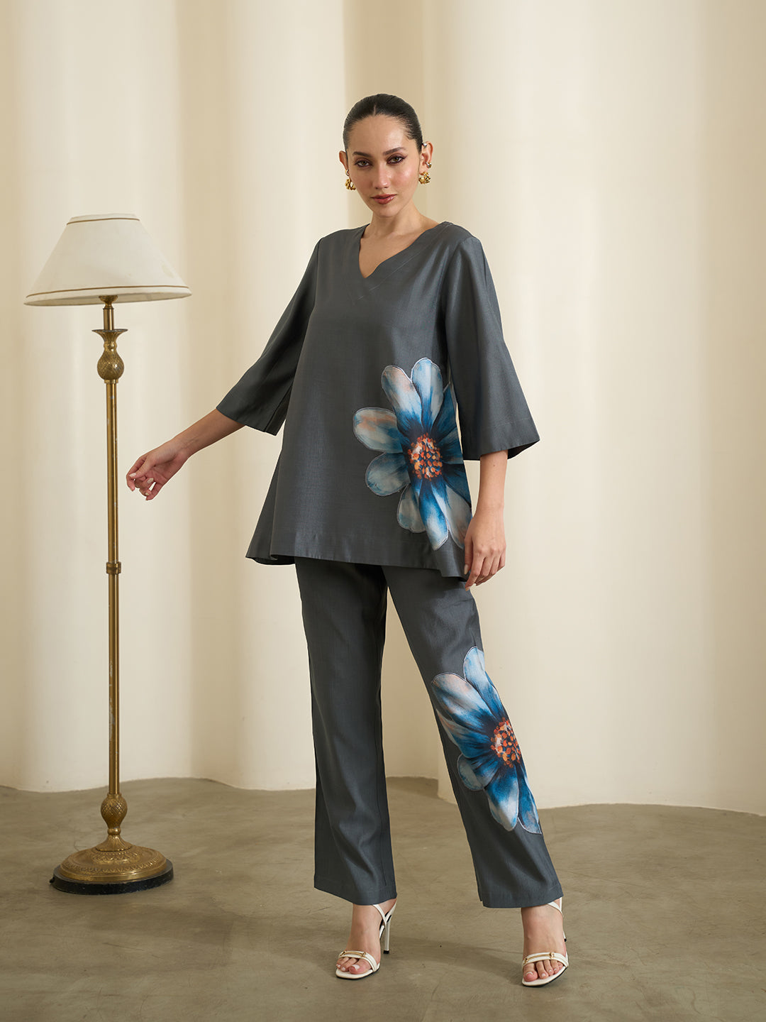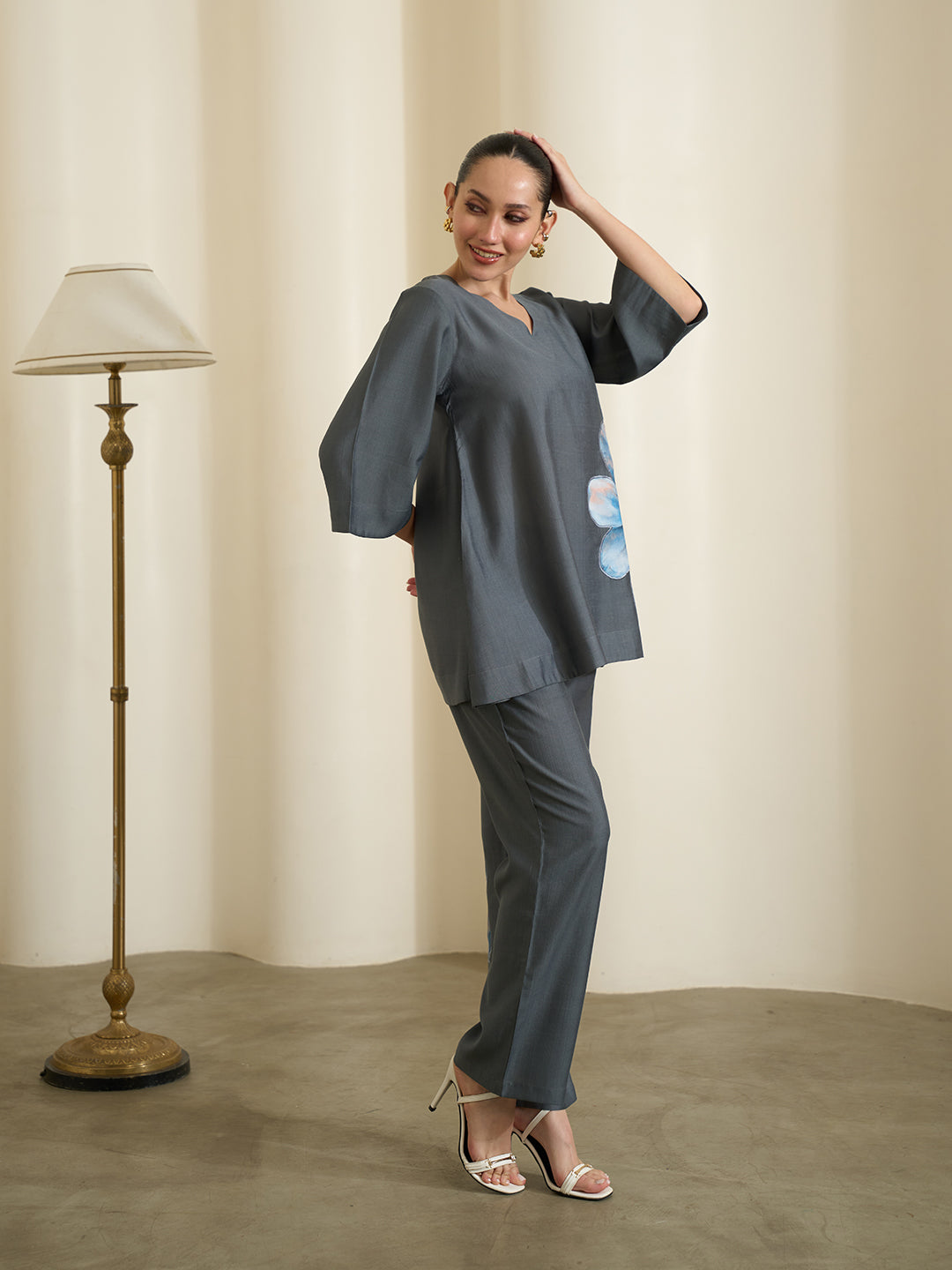Cool girl energy: activated. The Steel Bloom Upcycle Coords in sleek charcoal are where edgy meets elegant. With a dreamy blue flower that softens the steel tone, this one’s all about balance, think city minimalism meets Sunday chic. Throw on statement earrings and slides, and let your outfit do the talking.
