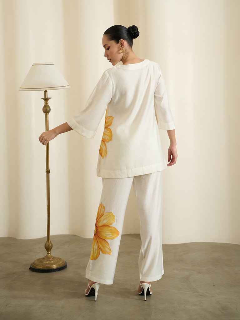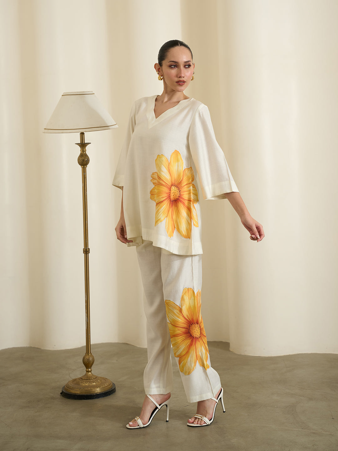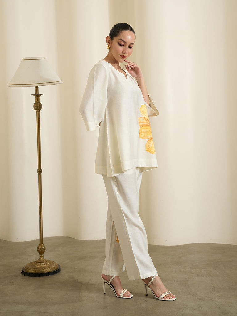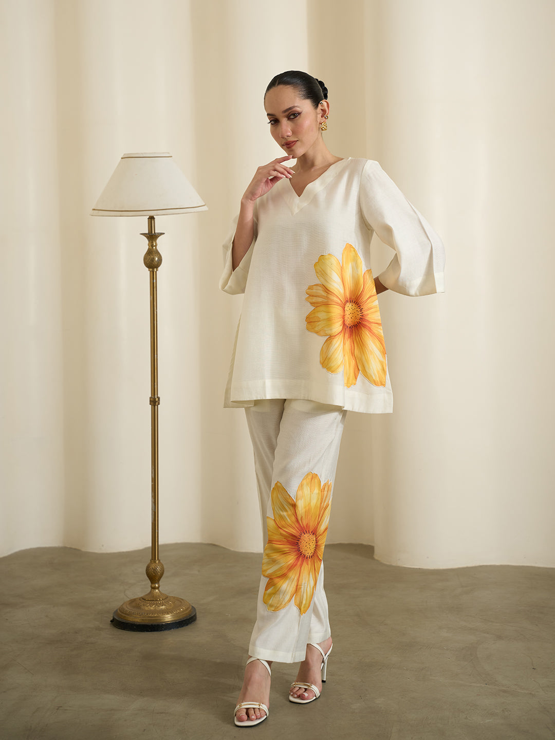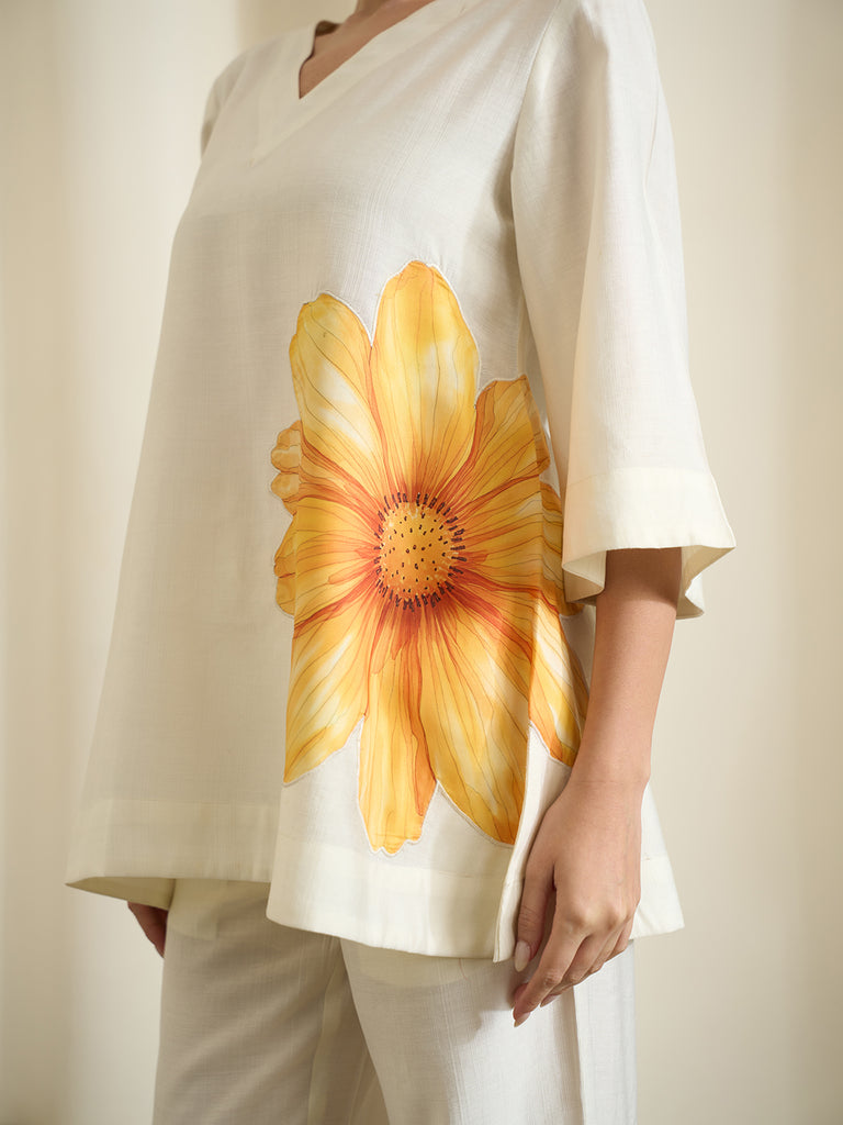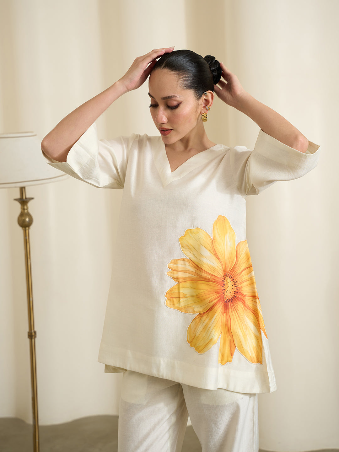 Bring your sunshine with you -literally. The Sunshine State Upcycle Coords are that mood-lifting, glow-getting set for days when you want your vibe louder than your playlist. Crafted in Vatican fabric with a hand-done oversized bloom, it’s got that “I woke up radiant” energy. Breezy fit, soft feel, max comfort ; pair it with hoops and your favorite slides, and you’re the main character in every coffee run.