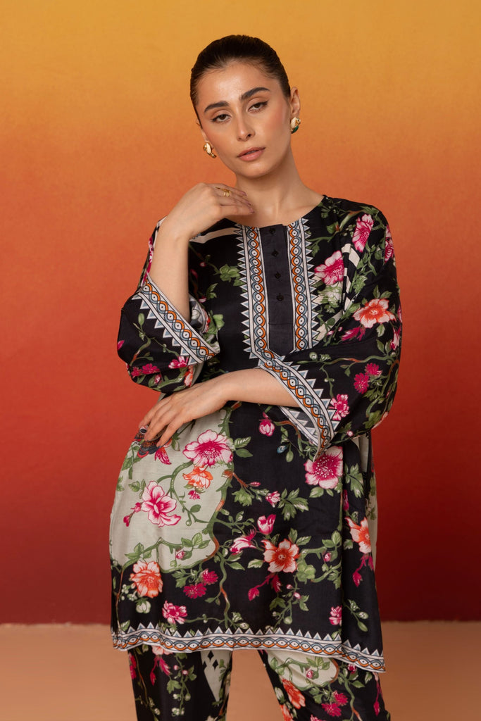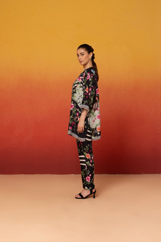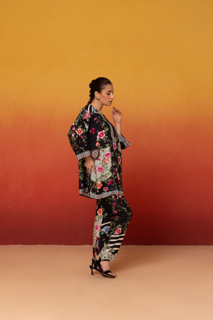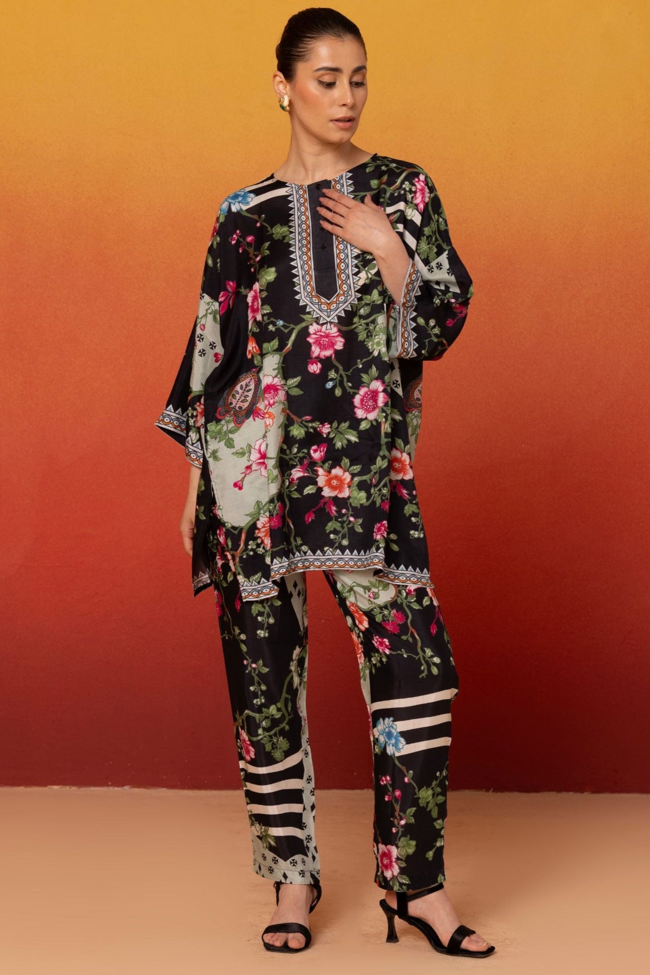 Like a starlit night over the valleys of Kashmir, Nazara shimmers in its quiet brilliance. Cloaked in black and cut from whisper-soft viscose muslin, this co-ord set is a portrait of refined grace—mysterious, powerful, and endlessly captivating.